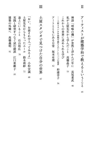 武蔵野美術大学建築学科で27年間に渡り、教鞭を取ってきた彫刻家土屋公雄氏が退官されました。建築とアートの両面から精力的に指導してきた土屋スタジオの軌跡を、卒業生や同僚の教官の方々からの寄稿でまとめた一冊。多様な表現世界を探究し、新しい価値を示す土屋氏のゼミの教育はアート関係者だけでなく、多分野の方々にも大いに参考になる取り組みと言えるでしょう。
